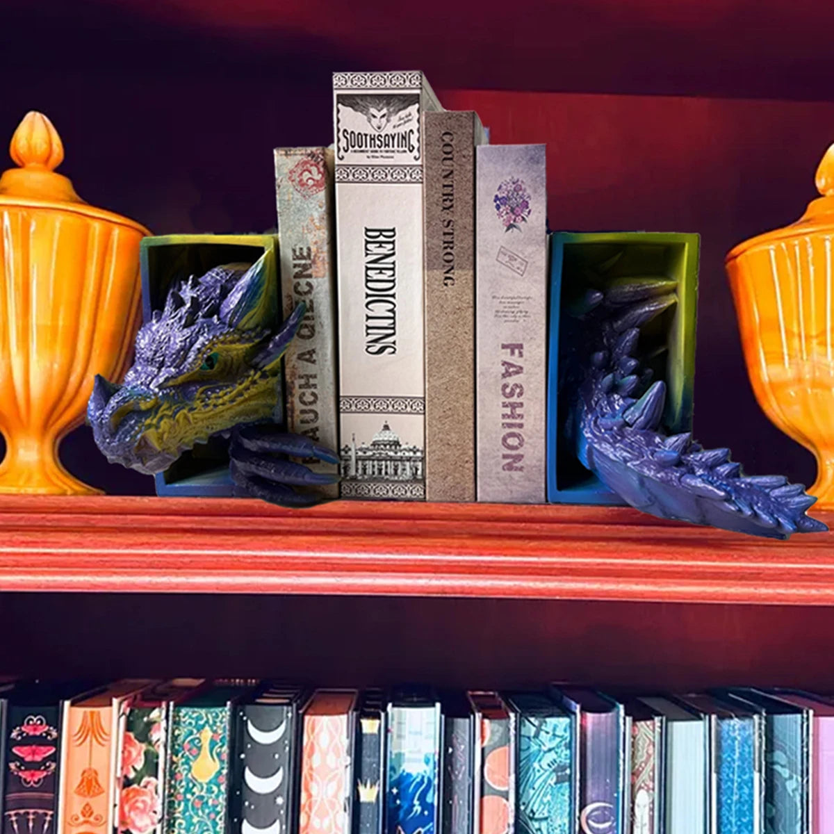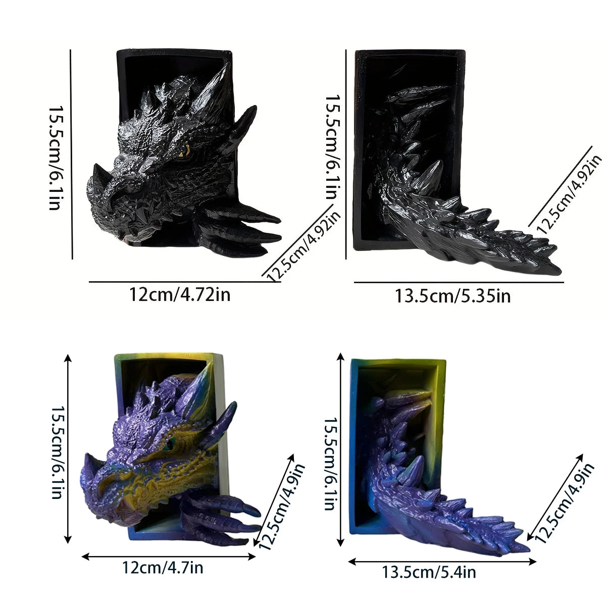 Dragon Bookends – 2-Piece Resin Fantasy Book Holder Set for Bookshelf or Home Office Decoration