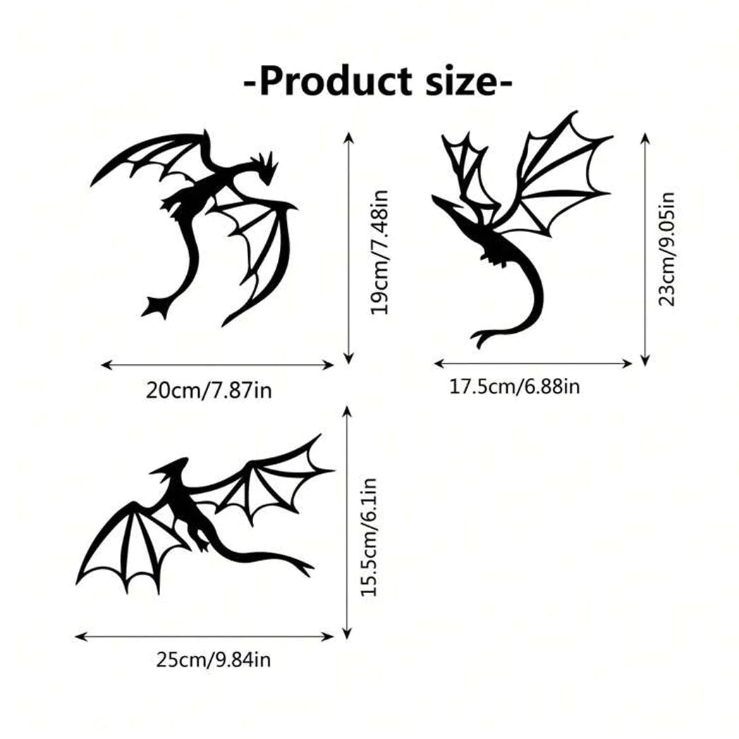 Flying Dragon Wall Art Set of 3 – Black Iron Metal Fantasy Decor for Home, Office, or Garden