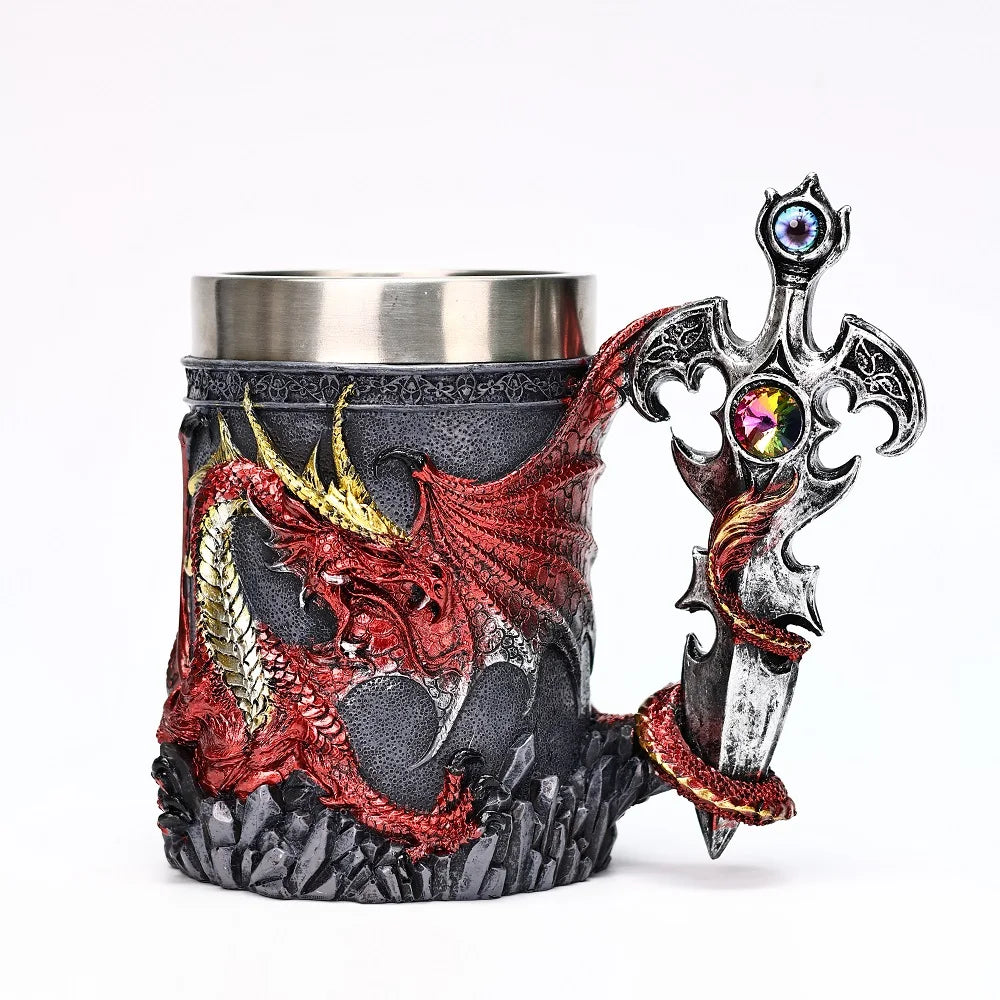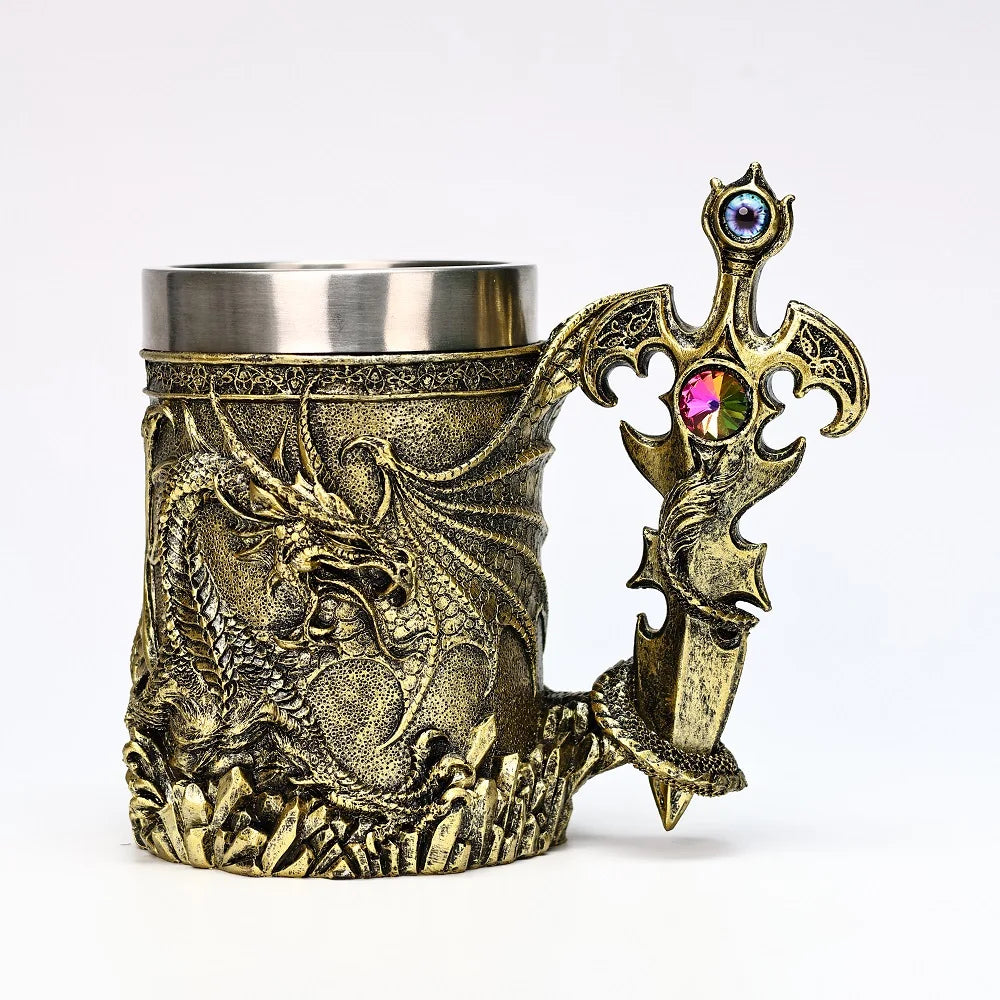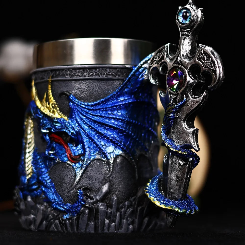 Unleash your inner dragon lord with this striking Dragon Gemstone Sword Tankard.