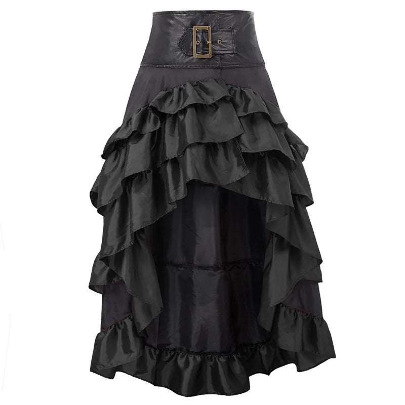 Transform yourself into a tale of high-seas adventure with this Women’s Steampunk Gothic Ruffled Bustle Skirt.